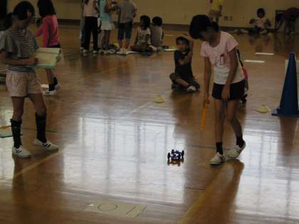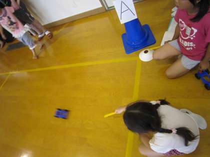 子ども達は,ゴムの力を調整してホールインワンをめざしていました。