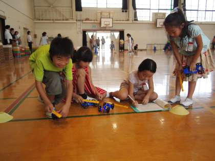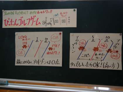 「ぴったんゴルフゲーム」でゴムの調節に注意しながらゲームを楽しみます。