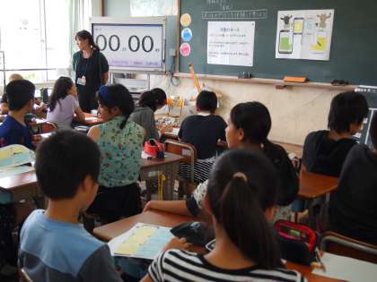 6年2組です。総合的な学習「メールのやりとりを情報モラルについて体験してみよう」の学習です。