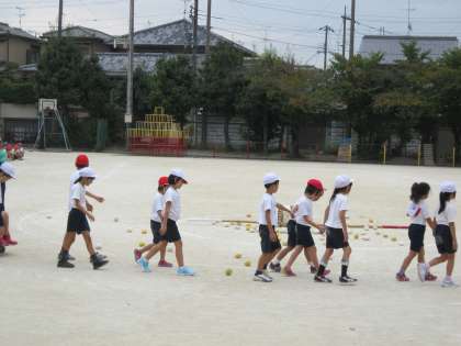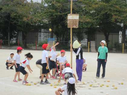 当日は4色に分かれて玉入れをします。3年生は,4つに分かれていて1グループ1回しますが,あおぞら学級のお友達たちは,4回していました。