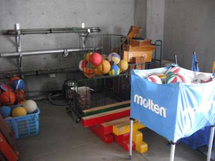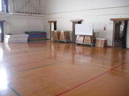 おかげさまで体育館の床はピッカピカ。倉庫の体育用具もきれいに整頓されました。