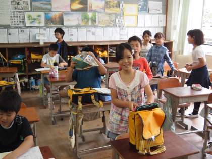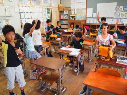 中間休みに登校してきた4年生の教室を訪ねました。「みさきが延期になったので,子どもたちは残念がってるやろうな…」と思い,ちょっとご機嫌を取りに行ってきましたがみんな笑顔で話してくれていました。手を挙げているのは「残念に思う人?」と聞いた後の様子です。
