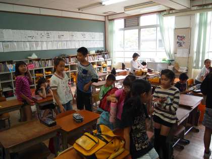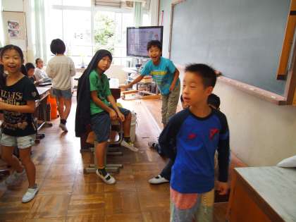 4年生,隣のクラスにも行ってきました。みんなゆったりと登校してきましたが,ちょっと時間を持て余していたような朝だったようです。今11時ですがまたちょっと曇ってきました。雨が降らなければいいですね。