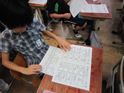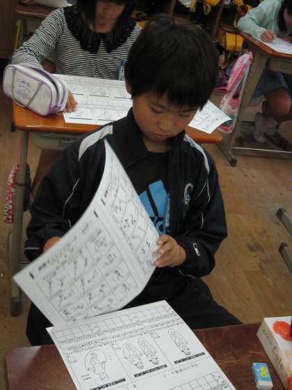 カードをもらって子たちは,どんな技が書かれているのかと,興味津々で見ていました。