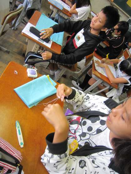 子ども達は,これまで家庭科で学習してきたことを使って,完成させようとしていました。