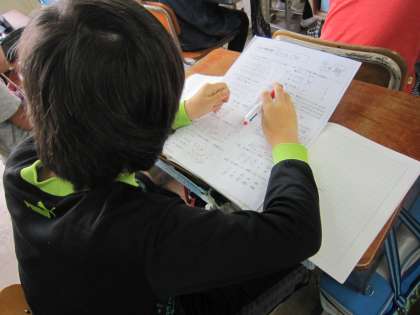 5年2組では,算数で学習してきた「倍数と約数」について復習していました。