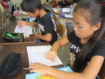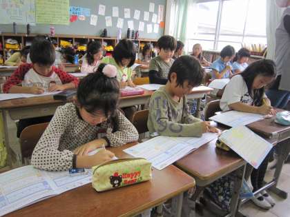 za zi zu ze zo da zi zu de doとなり,じとぢはzi,ずとづはzuとなっていることに気付いて,どうしてかなと不思議に思う子がいました。ローマ字は音を表しているのでこうなるのではと思いながら,子ども達の練習する姿を見ていました。