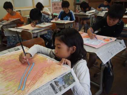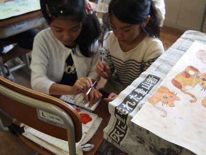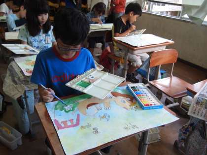 4年2組の図工です。「お話の絵」がだいぶん出来上がりが迫ってきたようです。もう少しの辛抱ですね。