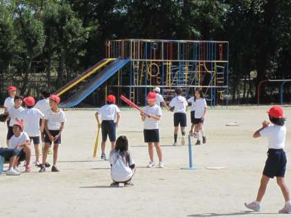 5年生は,体育でティーボールの学習をしています。