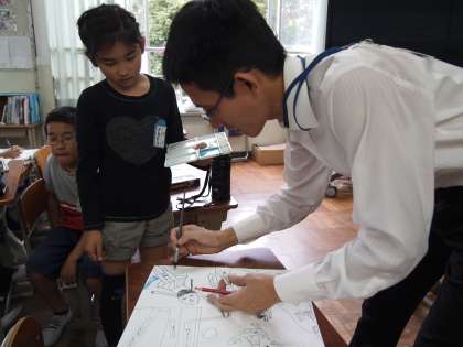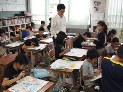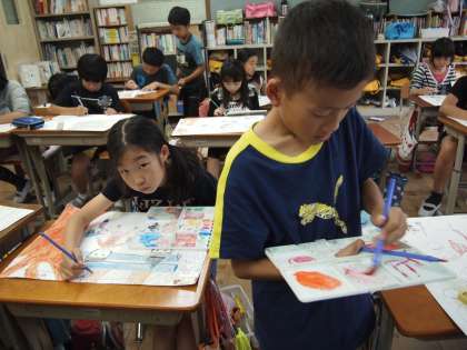 4年2組はお話の絵に取り組んでいる最中です。「お使い魔なんかじゃありません」という本ですが,十人十色の仕上がりになるのでしょうか。