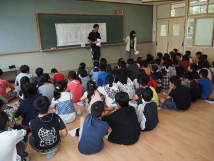5時間目は6年生がきらめきルームに集まっていました。後期初日の14日(火)の中間休みに第2回の「たてわり活動」があります。そのための全体の打ち合わせ会をしているところでした。
