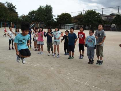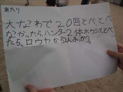 4年1組は通知票をもらった後,運動場で『逃走中』の遊びをしていました。大縄を跳んでいる子をみんなで大きな声で応援しているのが職員室に聞こえてきました。様子を見に行くとこんな感じで楽しそうにやっていました。カードを引くとこのような指示が書かれていたそうです。