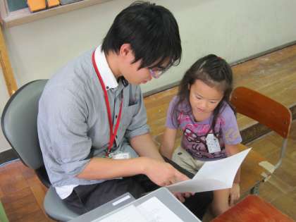 1年生は,初めて通知票「あゆみ」をもらいます。担任の先生の横に座って一人ひとりもらっていました。