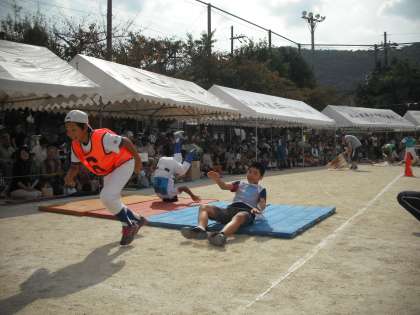 プログラムNO12.障害物走。第4関門マット。華麗に前転してゴールをめざします。