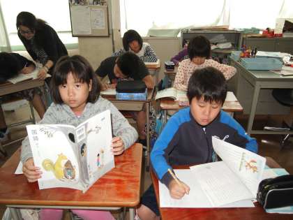 4年1組は新美南吉の名作『ごんぎつね』です。ごんや兵十の気持ちの変化を読み取っていくことがポイントです。
