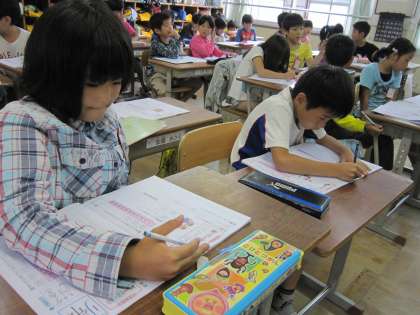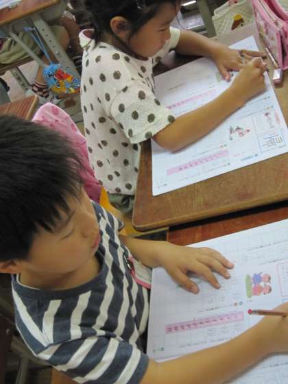 「親」という漢字のつくりについて学習した後,さあ漢字ノートを使っての練習開始です。
