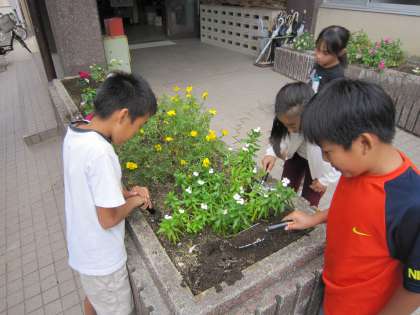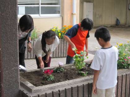 PTAの方々といっしょに植えた花を大切に育ててほしいと思います。