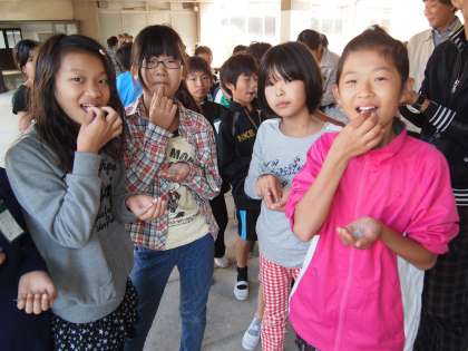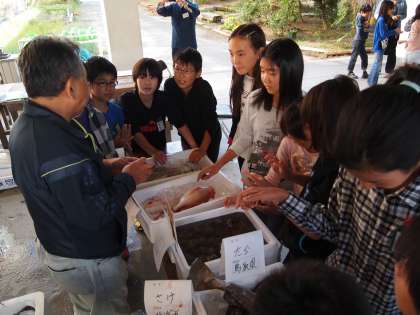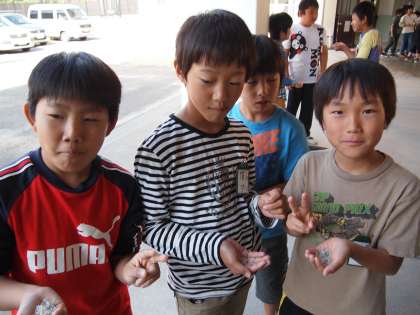 大渡り廊下では学年ごとの魚見学が始まりました。