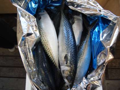 台風で手に入るかどうか心配だったのですが,八戸港から上がった鯖は極上ものでした。その大きさにビックリ!
