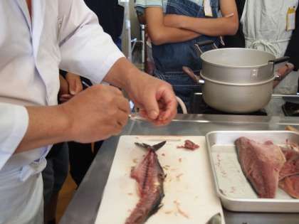 骨に残った身をスプーンでせせりとって集めておきます。これがあとで「ふりかけ」になるのです。