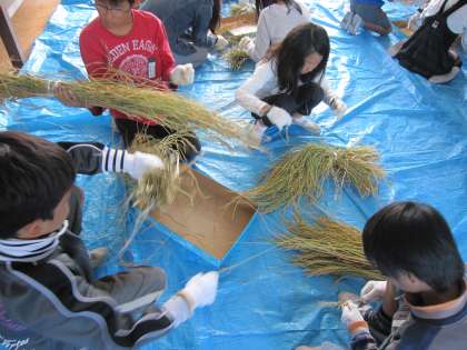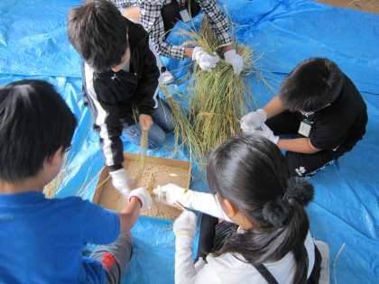5年生は,総合的な学習の時間に稲作に取り組みました。
