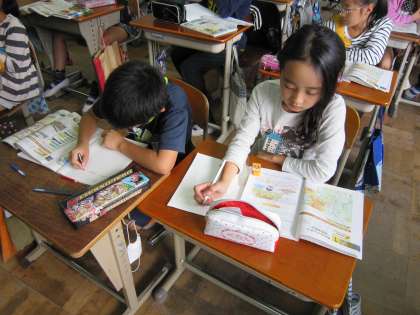 4年2組では,社会科の学習で「疏水を見て気づいてこと」を発表し合っていました。