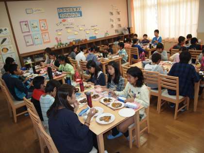 早朝からお昼過ぎまでいろいろな方にお世話になりました。京都市中央卸売市場第一市場と京都市中央卸売市場協会の皆様,京都の各お店の板前さん,ボランティアでお手伝いをして下さった保護者の皆様…本校の子どもたちのために,大変お世話になりありがとうございました。それでは「いただきます!」