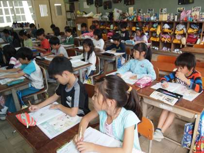 2年2組は漢字練習です。「後」という字ですが,バランスよく書くのが結構難しいようです。