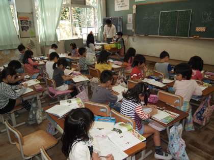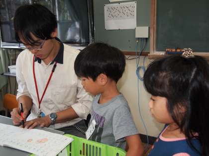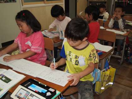 1年2組です。今日も算数はたしざんの練習です。慣れてきたようですね。
