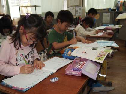 1年1組も同じです。たしざんの問題に集中していました。