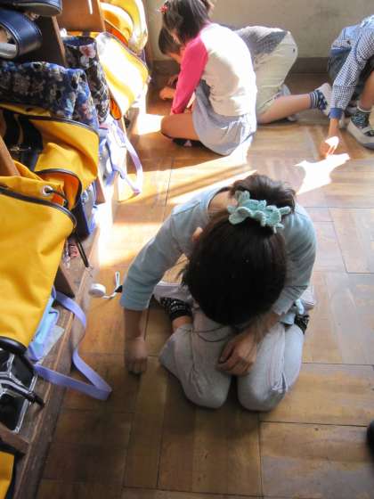 「一体何をしているの?」と思わず近づいて見てみると,床の隙間に入っているごみを取り出していました。この子たちはしっかりとみつけ玉を磨いているなあと感心しました。