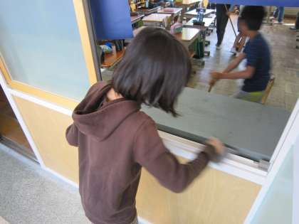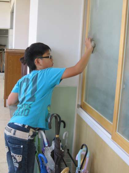 窓の溝にそって根気よく拭いている姿を見て,感心しました。