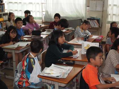 4年2組は「ごんぎつね」の学習でした。書かれている文はごんの目線か,兵十の目線か…。それぞれ根拠を持って発表していました。