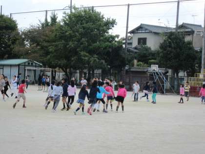 今日は,あおぞら学級・1・2年生が遠足に,5年生が渡月橋まで写生会に行っています。中間休みに運動場に出てきた子ども達もいつもより少なく,広々と使っていました。