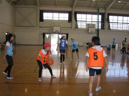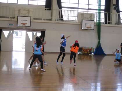 6年2組では,体育でバスケットボールに取り組んでいます。