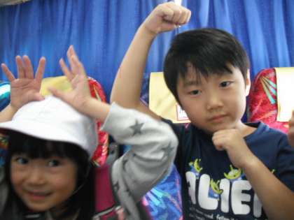 バスの中では,動物のものまねをして盛り上がっていました。