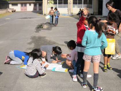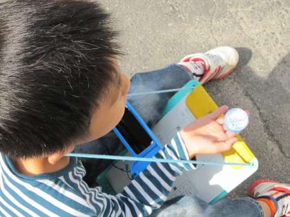 今日の1組では,方位磁針を使って太陽の動きを観察しようとしていました。