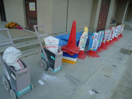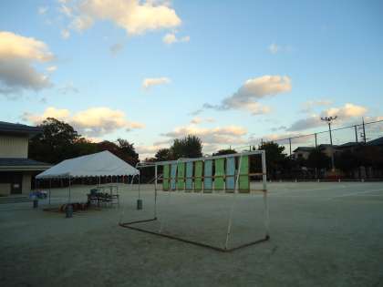 明日はいよいよ西京東支部の育成学級合同運動会です。放課後に支部10校の育成学級の担任の先生方と本校の教職員で準備をしました。