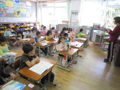 1年1組では,国語で「しらせたいな 見せたいな」という学習を始めます。