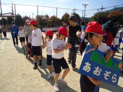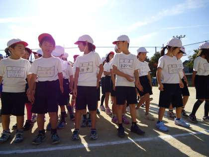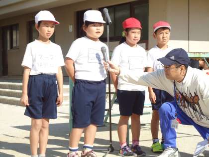 最初の交流学年の2年生,はじめの言葉を代表の子ども達が力強く…