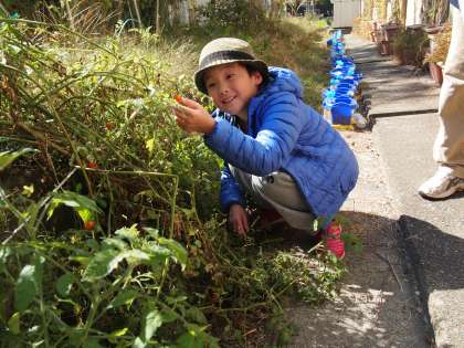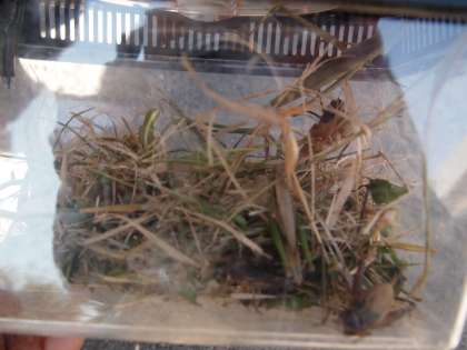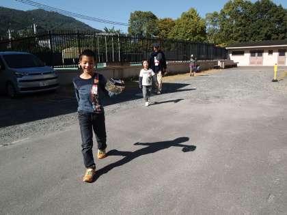 あおぞら学級はさっきまで東公園に行っていました。虫ケースにはショウリョウバッタやコオロギにイナゴ…いろんな虫が入っています。プールの前や学校園にも足を延ばしています。
