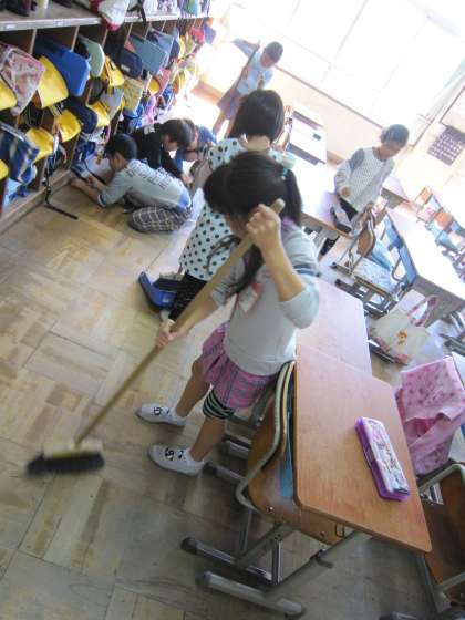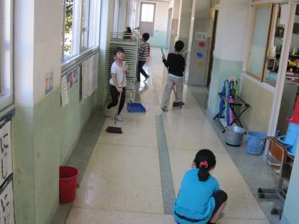 鏡をふいたり協力して掃除をしたりしていました。