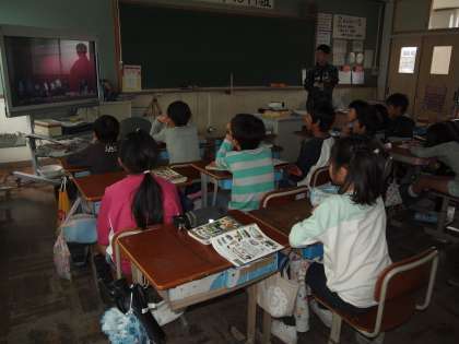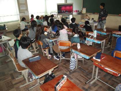 5年1組です。学芸会の練習のビデオを見て自分たちの演技をふり返っていました。まだ日数は十分あるので向上心を持ってやり切ってほしいです。