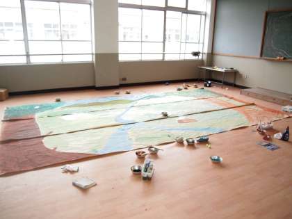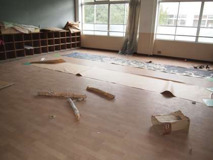 空き教室では大道具や舞台背景が置かれています。だんだん学芸会の雰囲気が盛り上がってきましたね。
