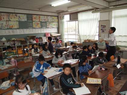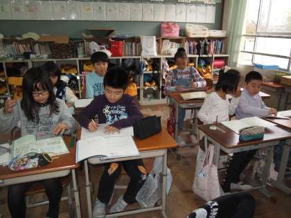4年1組です。宿題になる問題の文章を書いているそうです。今日はどんな宿題だったのでしょうね。