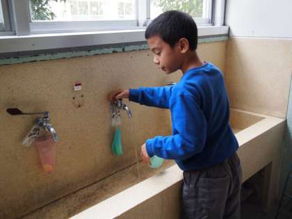 朝一番にあおぞら学級の子ども達がフッ化物洗口をしていました。