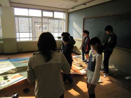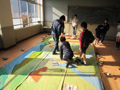 6年生は,自分たちで衣装について話し合ったり背景画をどうしていくとよいかを話し合ったりしていました。