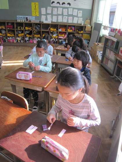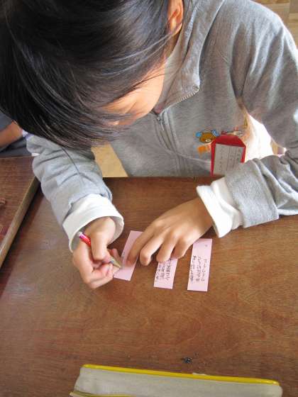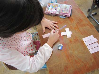 今日は,2クラスで人権標語を考えていました。