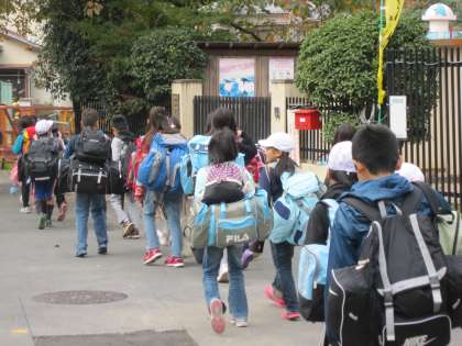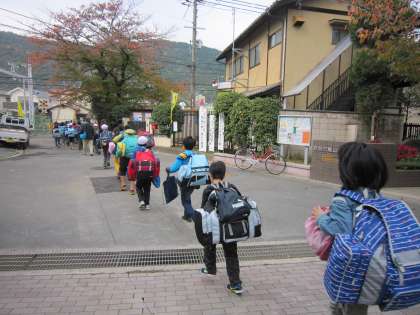「行ってらっしゃい。」の声に,満面の笑みで答える子ども達