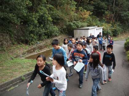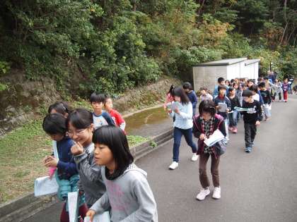 さて,お次は今晩のお楽しみ「きもだめし」のコース下見に出発です。